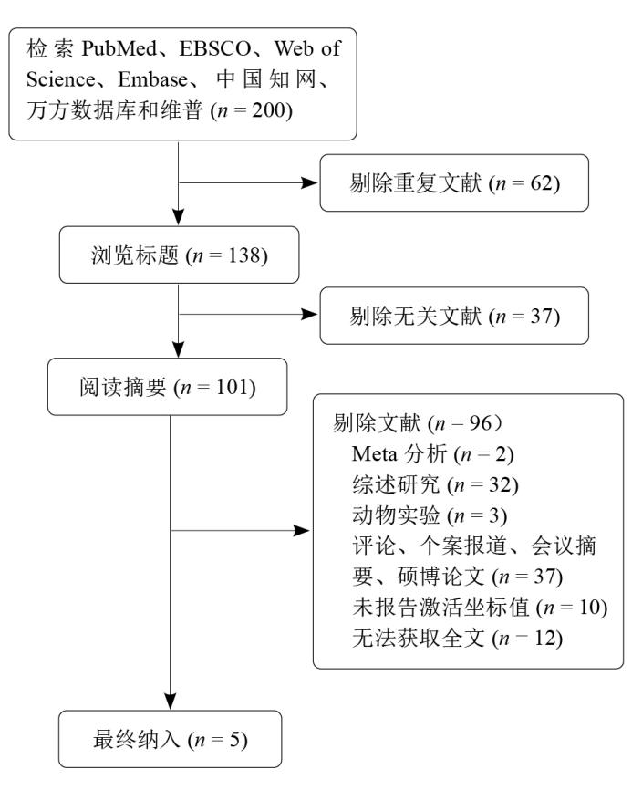 方法 检索PubMed、EBSCOhost、Web of Science、Embase、中国知网、万方数据库和维普建库至2025年2月间发表的音乐干预对AD患者神经可塑性影响的文献。采用激活似然性估计(ALE)对功能磁共振成像数据进行Meta分析。