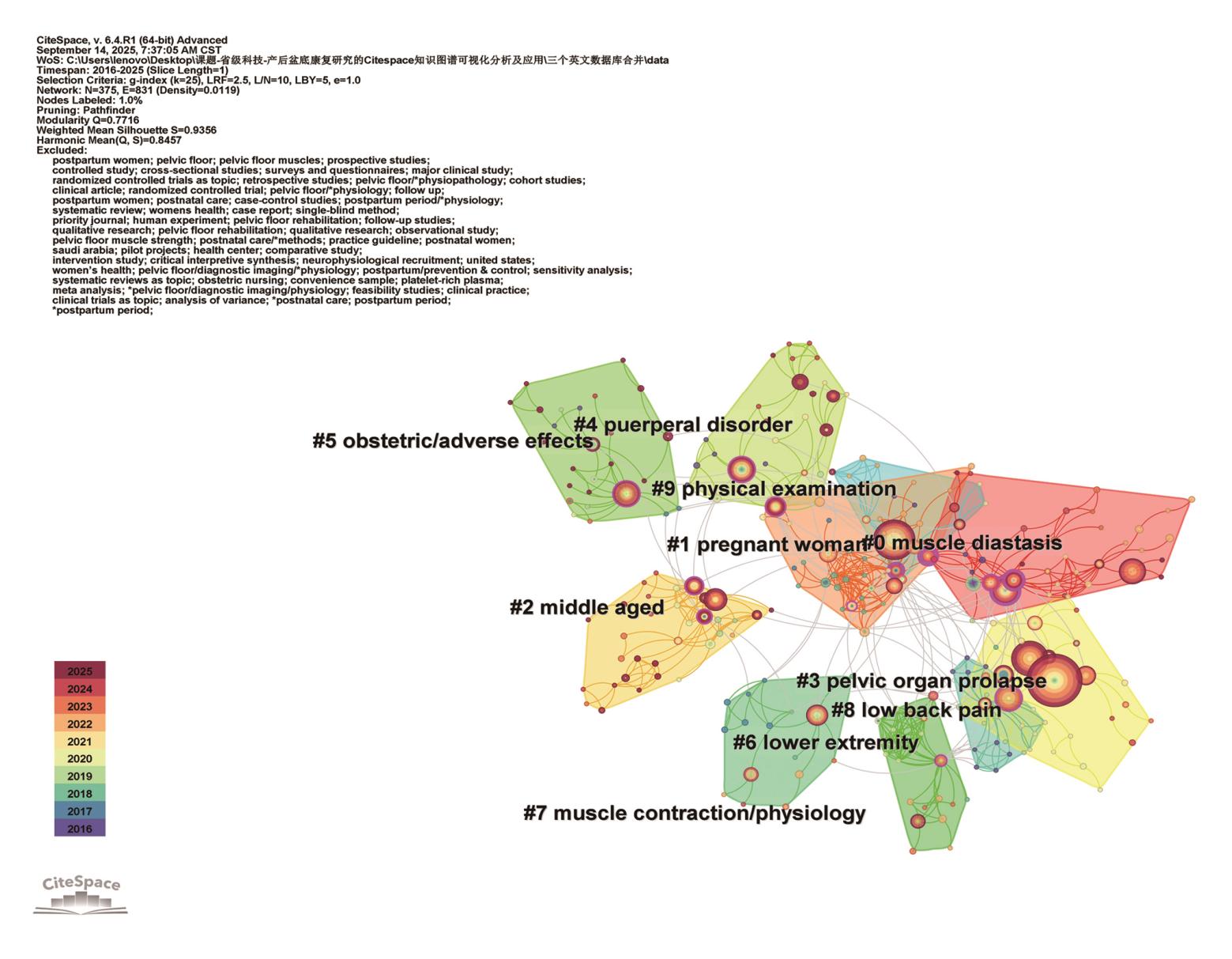 陈雯. 2016年至2025年产后盆底康复研究的文献计量分析[J]. 《中国康复理论与实践》, 2025, 31(12): 1421-1429.
