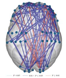 Difference in connection strength between DD and TD groups based on channel connection function"